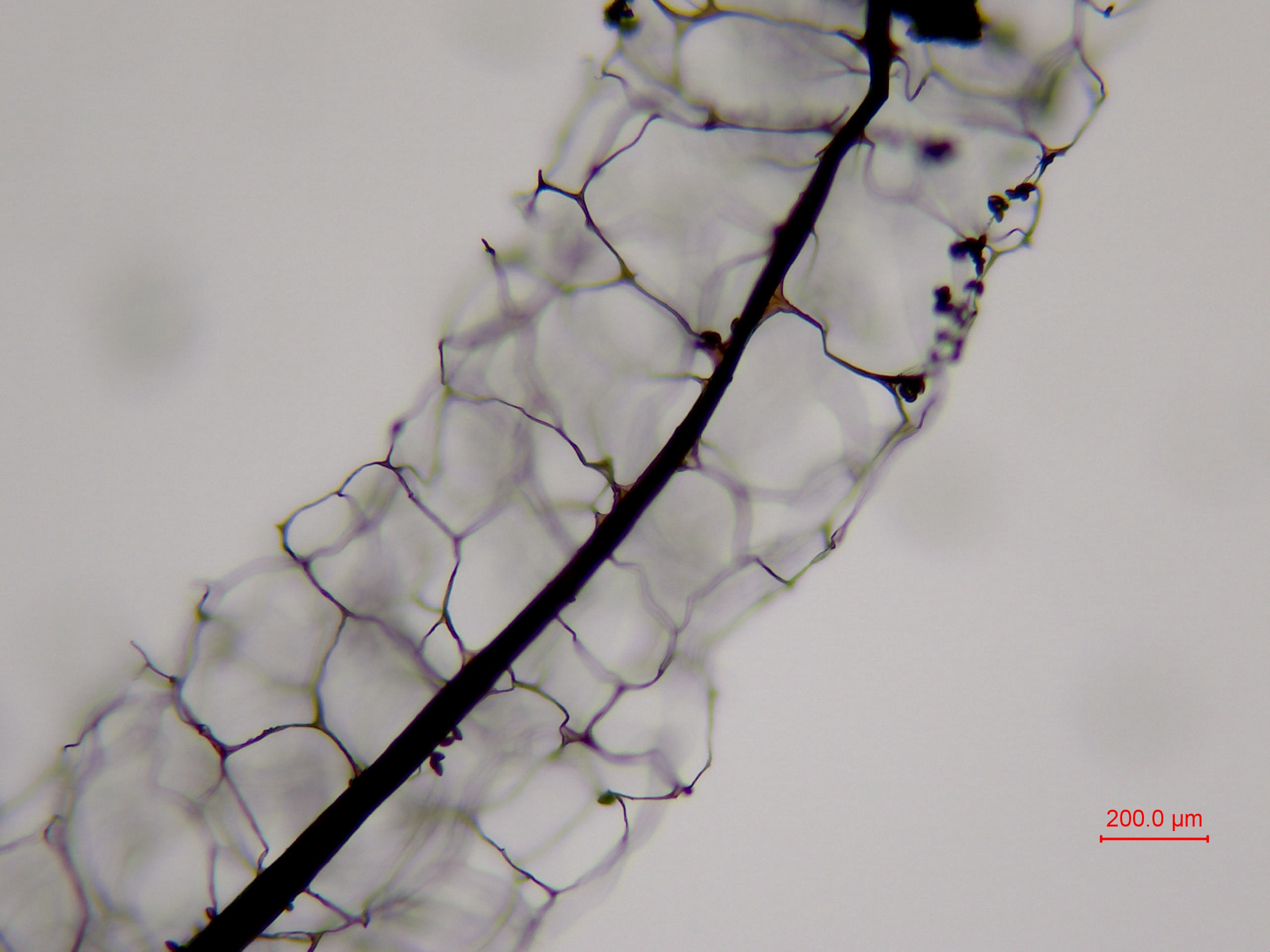 Capillitium : réseau interne et externe à grandes mailles. Capillitium naissant tout le long de la columelle, brun-rouge, brun foncé, souple; filaments aplatis, parfois noduleux, membraneux, avec quelques extrémités libres dont la pointe est plus claire.