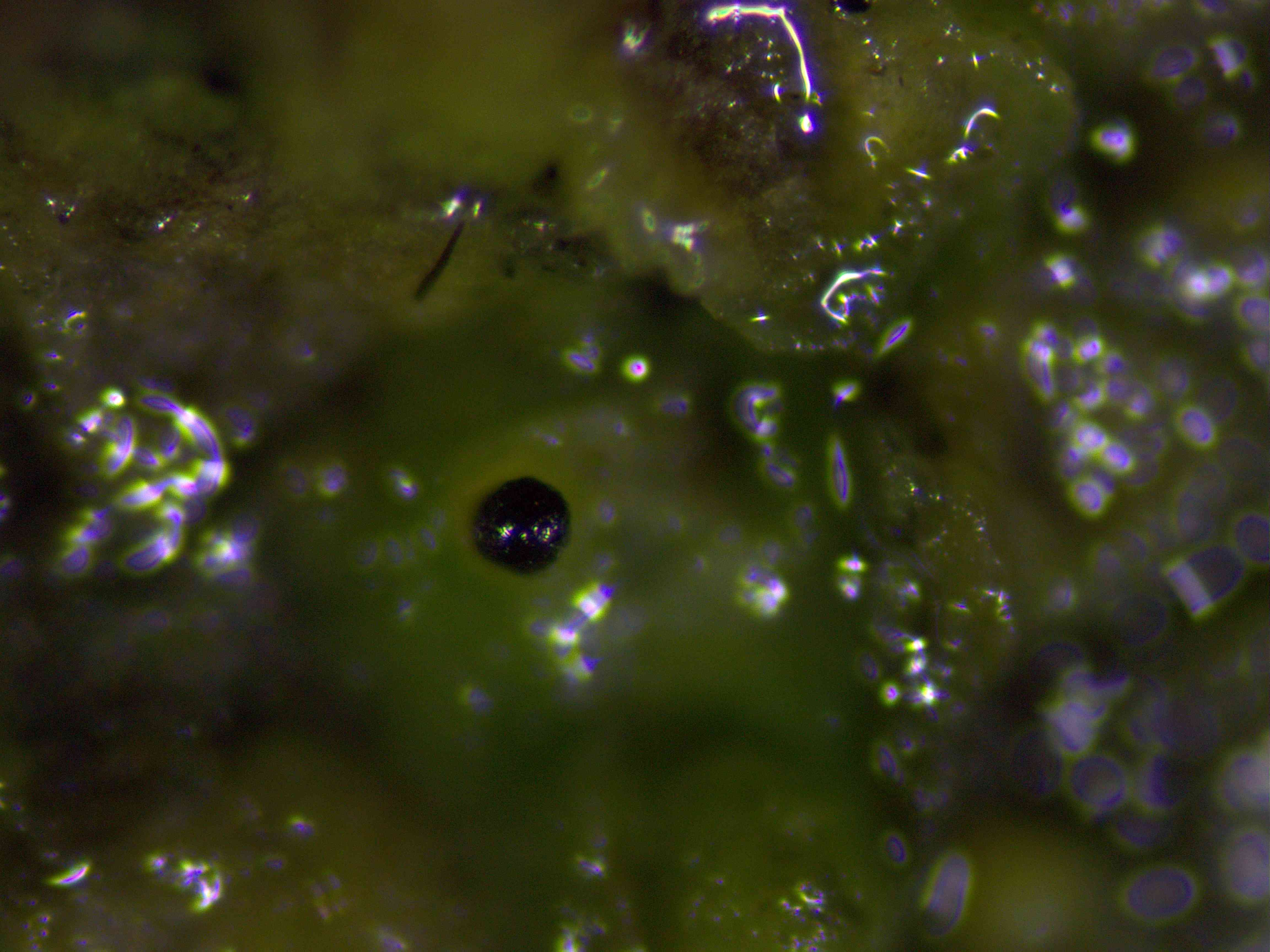 - malgré leur petite taille, les points noirs luisants des sporocarpes étaient facilement repérables sur le fond vert clair des algues. Nous avons pu observer leurs différentes formes décrites dans la description originale : globuleuses et posées sur la surface, mais aussi hémisphériques, en coussinets et paraissant imprégnées par un gel hyalin.