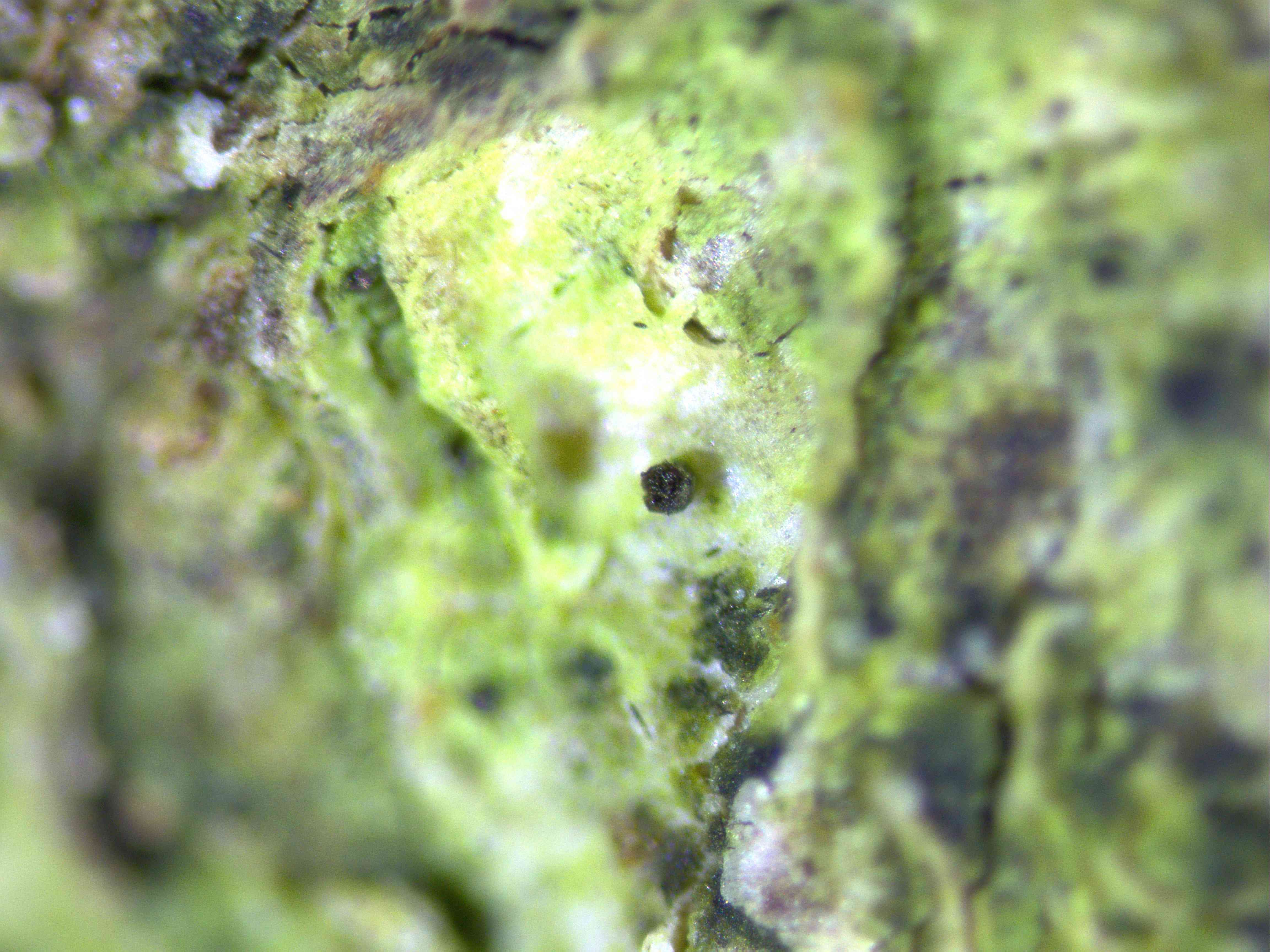 Habitat, récoltes associées : sur des écorces de Fagus sylvatica (I), encore vivant mais parasité par divers champignons : Fomes fomentarius, Bjerkandera adusta et d’autres situés trop haut pour pouvoir être identifiés ; les écorces ont été prélevées sur des zones rugueuses d’exfoliation (chancre), recouvertes de bryophytes (essentiellement Hypnum cupressiforme), d’hépatiques (Lophocolea bidentata, Metzgeria furcata et Radula complanata) et d’algues unicellulaires, vraisemblablement de la famille des Chlorellaceae ou des Chlorococcaceae*.